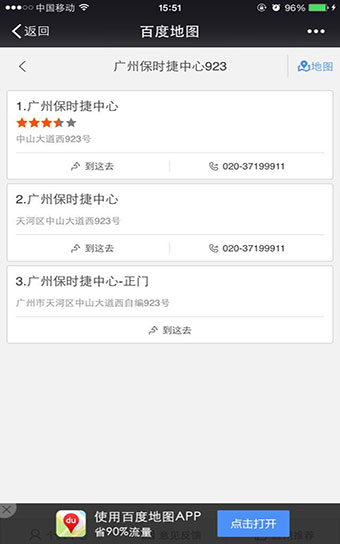 充分應(yīng)用手機(jī)的特性,配合百度地圖,可以讓客戶一鍵導(dǎo)航至公司。